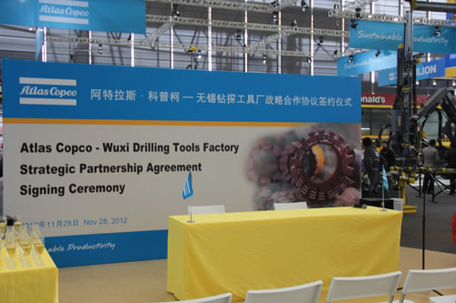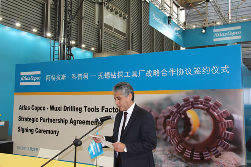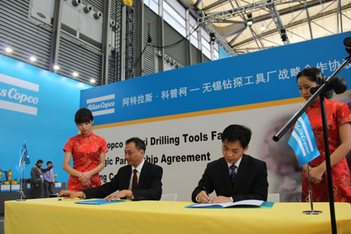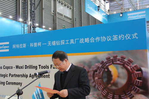 Le 28 Novembre 2012, la Société TallKee Drilling Tools Factory et Atlas Copco Geotechnical Drilling and Exploration ont tenu au Centre d’Exposition Shanghai Bauma une cérémonie de signature d’un accord de cooperation strategique. Le Président Victor Tapia de Atlas Geotechnical Drilling and Exploration; Mr WenYangzhi, Directeur General de la Division Technique d’Excavation de Mines & Roches de d’Atlas Copco et du Centre de Clients de la Région Chine; Mr Guan Jian, Président du Bureau Central de la China Geological Equipment et Directeur Gao Shenyou de TallKee Drilling Tools Factory ont respectivement délivré des discours. Cette cooperation va renforcer le marche des produits de standard GB d’Atlas Copco en Chine et renforcer la compétitivité de Wuxi Drilling Tool Factory dans le marché de la DCDMA. En étendant la couverture des clients et du marche des deux parties, Atlas Copco et TallKee Drilling Tools Factory assisteront a une amélioration dans les ventes de foreuses et carotteuses a corde.